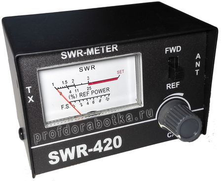 SWR-420 предназначен для настройки КСВ антенн 27 мГц. Из-за простоты эксплуатации его можно использовать как для первоначальной настройки антенны, так и например взять с собой в путешествие, для аварийного замера КСВ антенны в случае ухудшения ее работы.